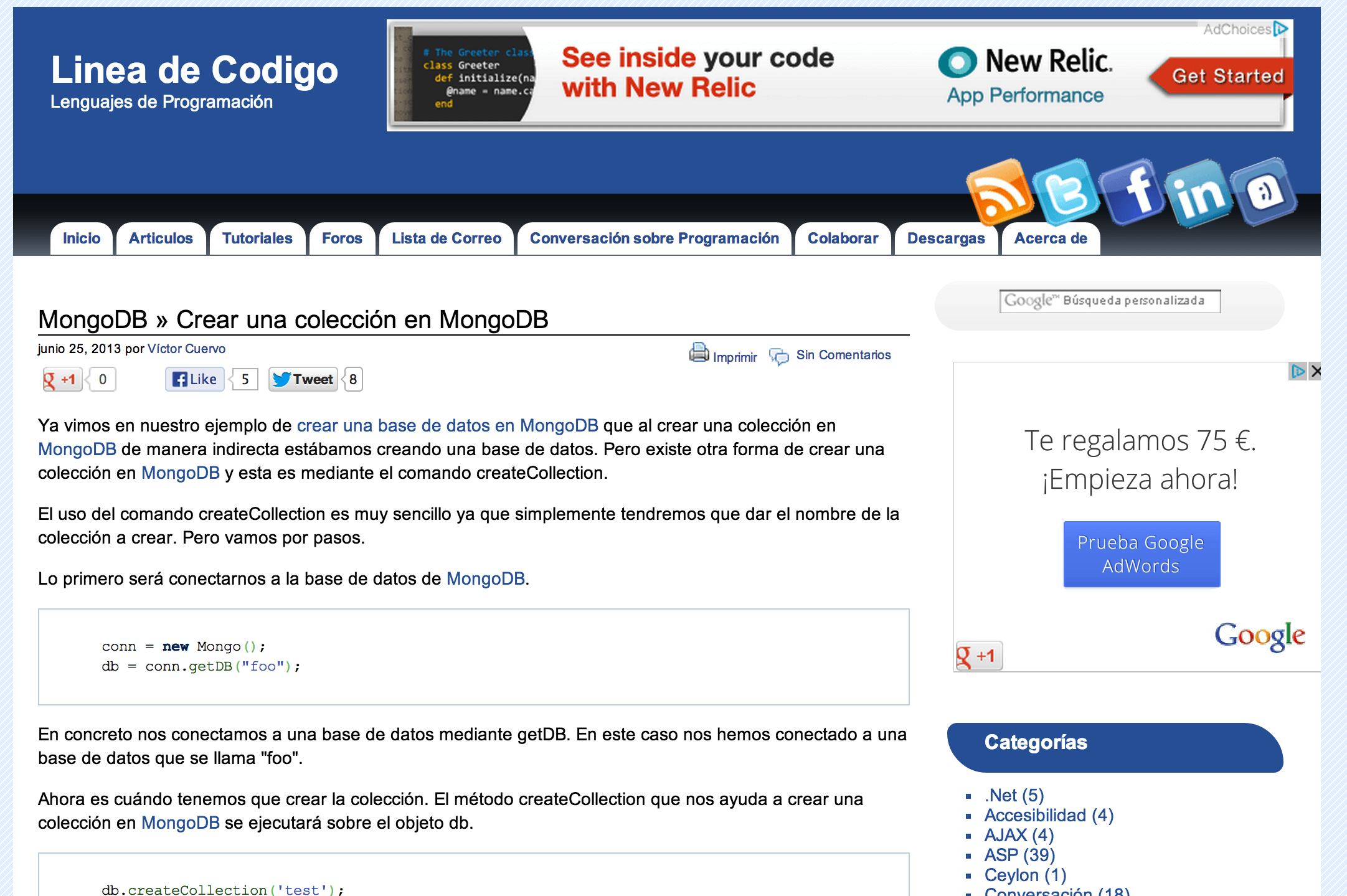 Así que gastándome una pasta, para la época, decidí regalarme para mi 24 cumpleaños un dominio propio. Y aquí nace Línea de Código, el 19 de noviembre de 2001. La verdad que nace con otro nombre, ya que su primer nombre fue el de aulambra.com, pero con la misma idea que va en los genes de Línea de Código. Publicar articulos de programación para que la gente pueda dar sus primeros pasos y empezar a aprender.